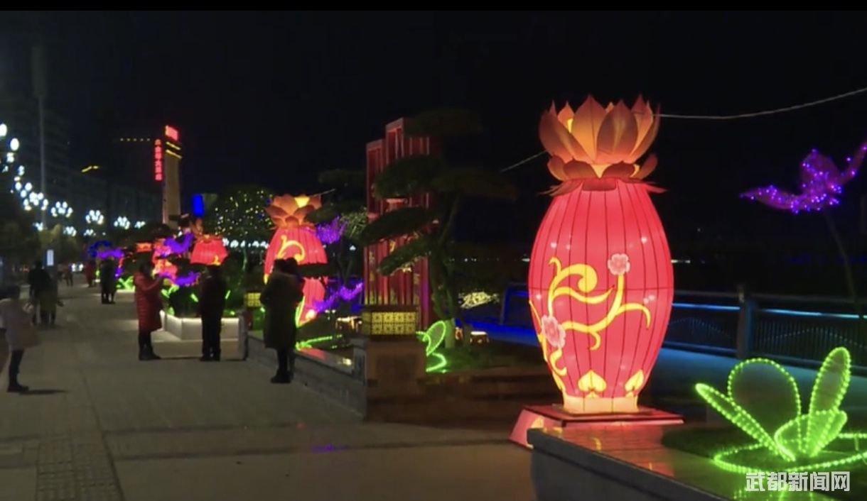 武都新闻网2月11日讯(记者 杨榛榛 陈鹏飞)夜幕降临,彩灯闪烁,装扮一新的武都城展现出一派迷人的夜色,各公园、街道两旁彩灯路灯齐放光彩,满眼的流光溢彩、满城的火树银花,处处洋溢着喜庆祥和的节日气氛。