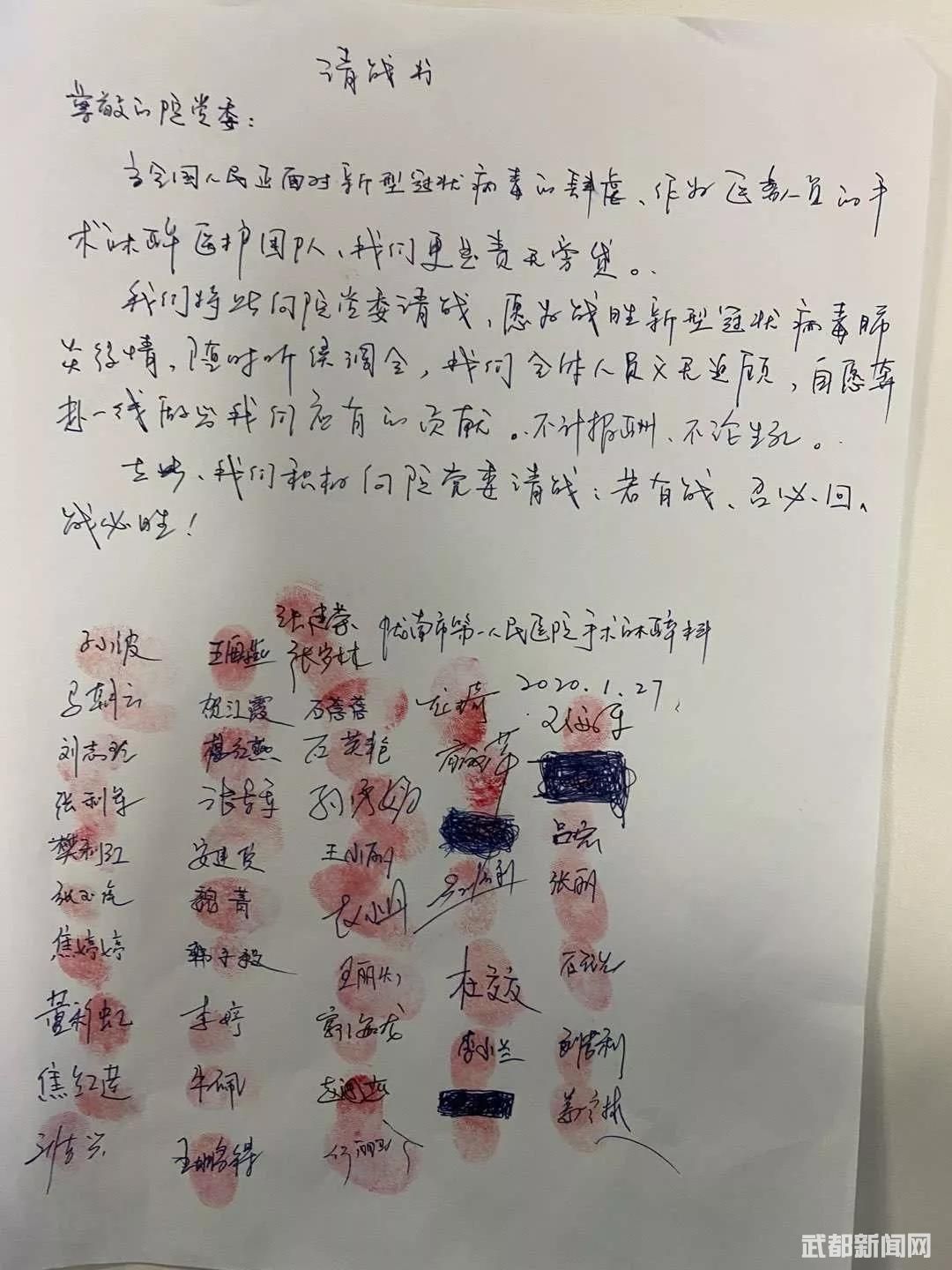 “坚守预防、发热门诊的第一线,圆满完成任务,一切后果自己承担”“我志愿加入抗击冠状病毒的一线”“我是学呼吸专业的,在一线能发挥所学”“随时听从党委的召唤”……从元月22日起,一封封请战书,一篇篇感人肺腑的请战文章,递交到陇南市第一人民医院党委办公室。