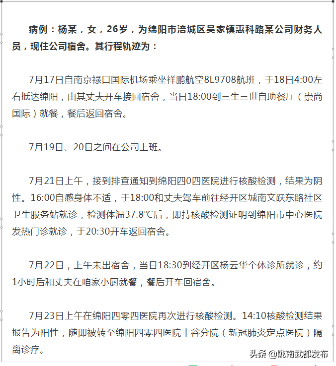 1.请7月18日来自绵阳市涪城区吴家镇惠科路1号厂区或与绵阳市确诊病例行程轨迹有交集的人员第一时间主动向所在社区(村)和工作单位报告,按要求配合属地落实健康监测、核酸检测等各项防控措施。